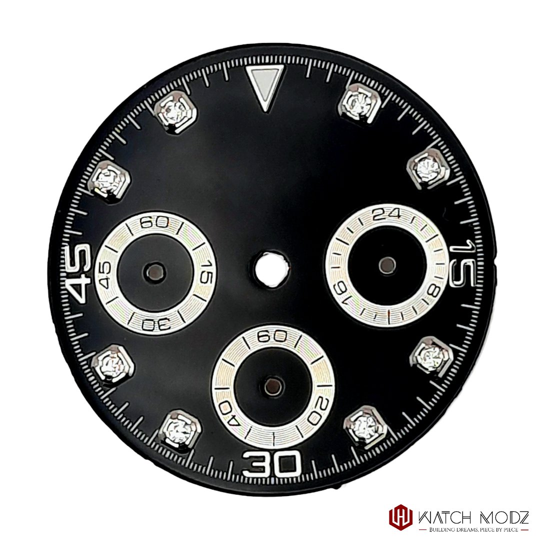 The New VK63 Dial: Black Diamond is now available at Watch-Modz! This beautiful chronograph dial is 29mm in diameter and is perfect for your next Daytona inspired build!